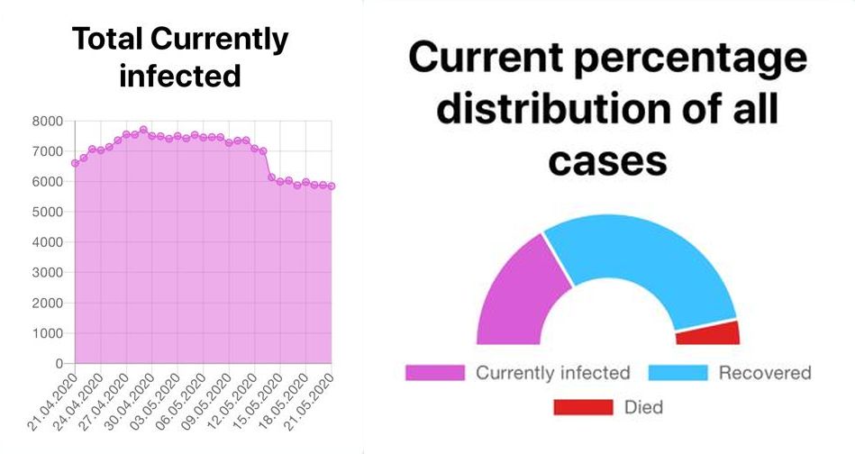 Eddig 10.777-an gyógyultak meg, akiket már kiengedtek a kórházból. Így az aktív esetek száma 5.776-ra csökkent.