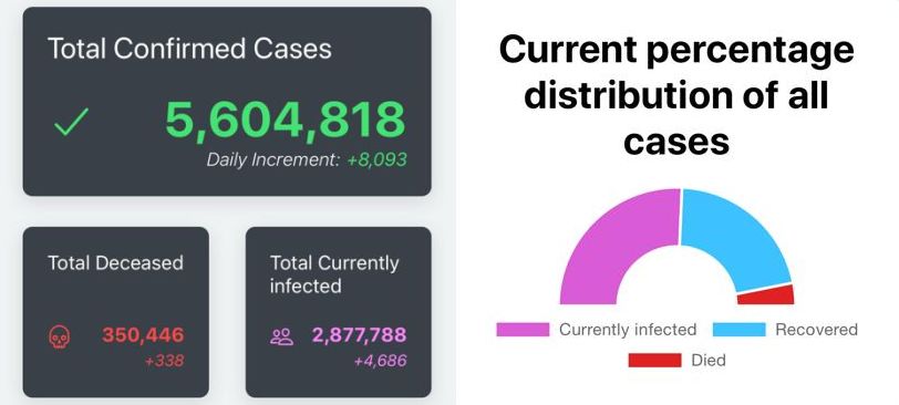 Világszerte már 5,6 millióan fertőződtek meg az új típusú koronavírussal, a halottak száma meghaladja a 346 ezret.